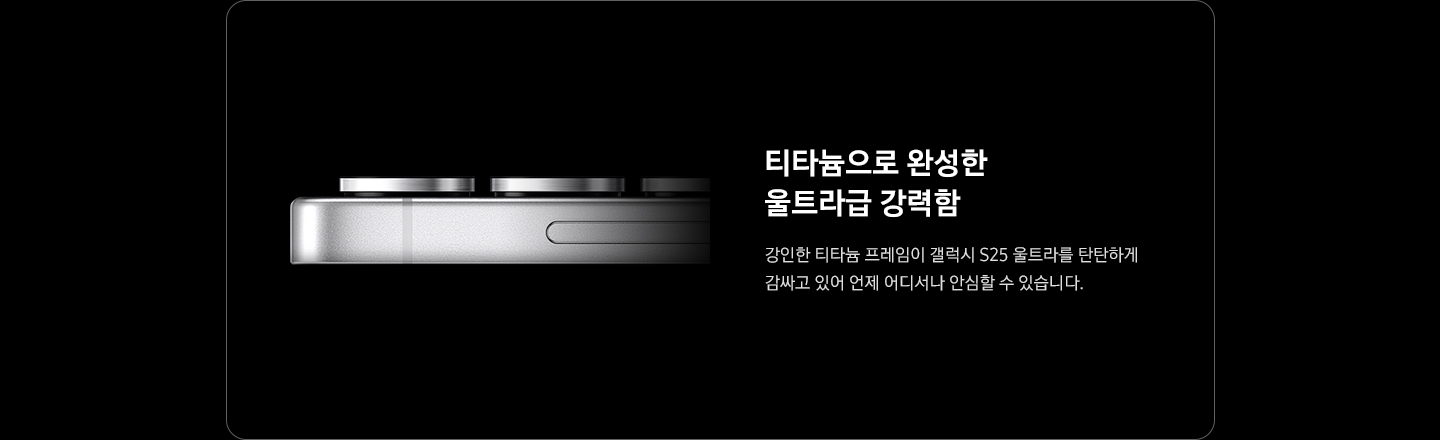 갤럭시 S25 울트라는 티타늄 프레임을 적용하여 내구성이 한층 강화되었습니다.